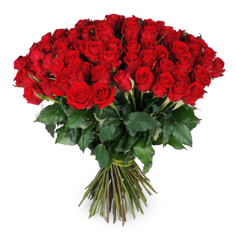 Zawsze świeże kwiaty Wyraź skrywane uczucia wspaniałym bukietem kwiatów. Wyślij ukochanej kompozycję z 100 róż, które zostały ozdobione bogatym zielonym przybraniem. Do bukietu dołóż bilecik gratis, na którym zamieścisz własną treść bądź życzenia. Długość róż w wersji: